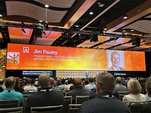 6月17日下午,协会组织部分企业代表参加了展会开幕式暨全体大会,听取了NFPA主席吉姆·波利和David Pogue(哥伦比亚公司记者,艾美奖得主、前纽约时报专栏作家)的主旨演讲。