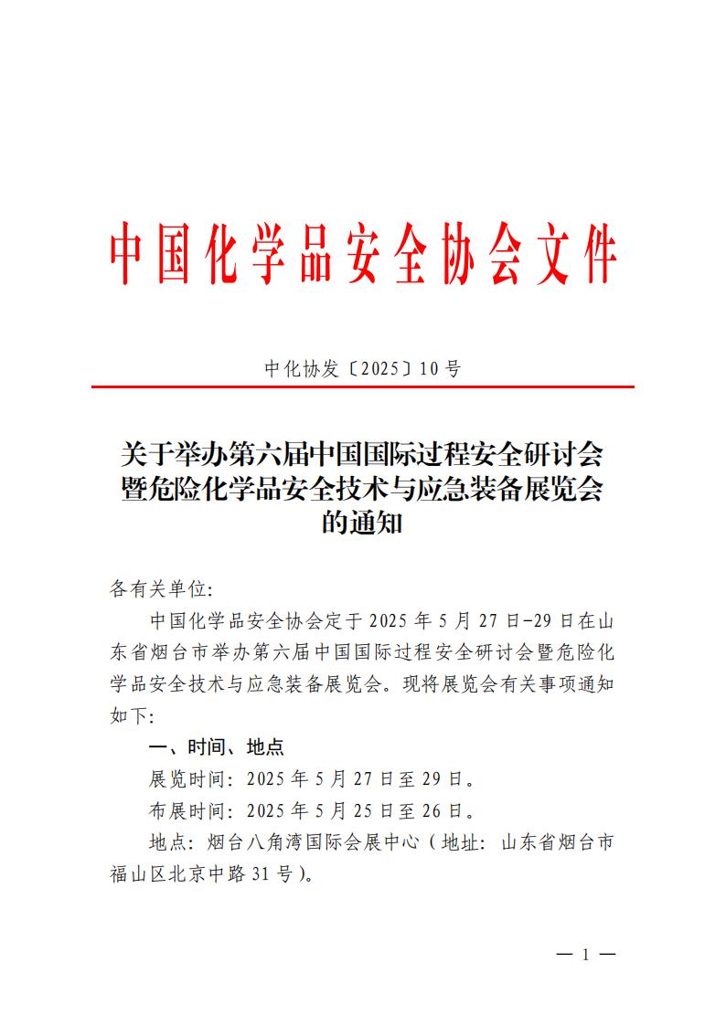 关于举办第六届中国国际过程安全研讨会暨危险化学品安全技术与应急装备展览会的通知