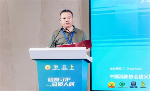中国应急管理学会消防工作委员会委员赵新文以《当前消防安全面临的典型火灾风险》为题,用大量触目惊心的案例,揭开建筑、家居领域潜藏的火灾隐患,深刻阐述阻燃材料在火灾预防中的关键作用,让在场所有人深刻认识到阻燃技术创新的紧迫性与重要性。