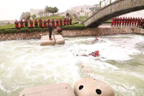 6月2日下午,牛跃光副会长考察了日照市消防救援支队依托日照水上运动中心建立的“水域救援技术实训基地”和山海天消防救援海岸执勤点,观看了支队开展的激流回旋场地水域救援技术、舟艇救援技术等科目的实战训练及执勤点执勤备战情况。