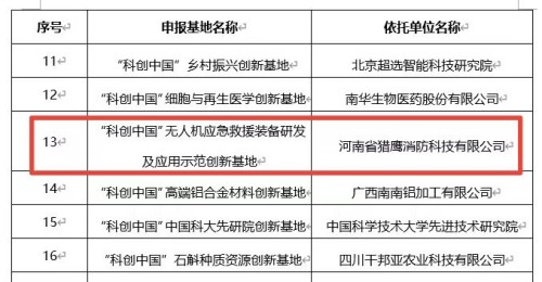 近期,中国科协科学技术创新部发布2023年度“科创中国”创新基地示范项目评审结果公示:按照《关于申报2023年度“科创中国”创新基地示范项目的通知》(科协创函融字〔2023〕47号),经项目申报、资格审查、专家评审,共评审出创新基地示范项目40个,其中产学研协作类示范项目25个、创新创业孵化类示范项目10个、国际创新合作类示范项目5个。由我会推荐、河南省猎鹰消防科技有限公司作为依托单位,申报的“科创中国”无人机应急救援装备研发及应用示范创新基地成功入选,是目前消防领域唯一上榜的产学研协作类示范项目。